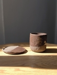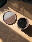 На фото зразок випаленого шамоту на 1080 С; на половину покритий прозорою поливою